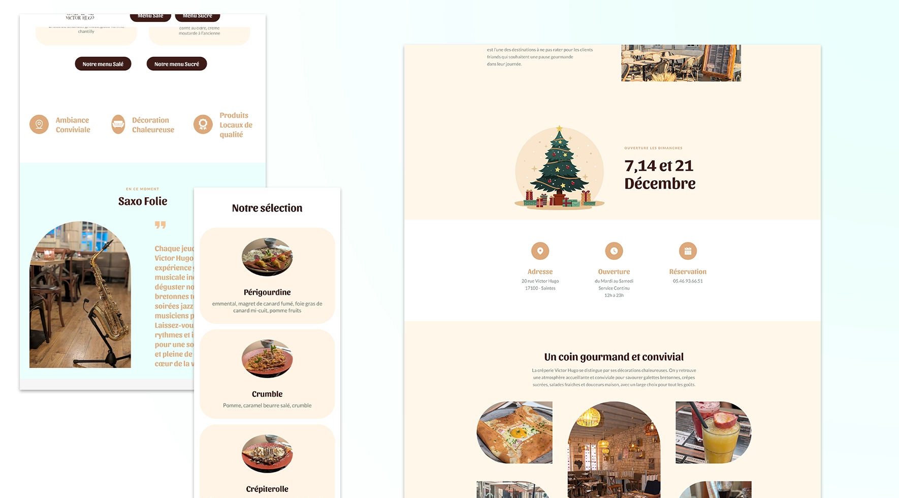 La crêperie Victor Hugo avait besoin d’un site capable de traduire en ligne ce « coin gourmand et convivial » que l’on découvre en poussant la porte du restaurant. L’enjeu était de faire ressentir, dès l’écran d’accueil, l’atmosphère chaleureuse du lieu et l’envie de s’y attabler pour une galette ou une crêpe.
